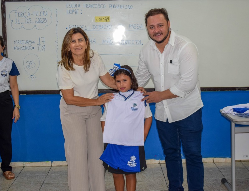 A Prefeitura de São Mamede, por meio da Secretaria Municipal de Educação, deu início à distribuição do novo fardamento escolar para os alunos da Rede. O prefeito Chaguinha Lopes, acompanhado da secretária Maria da Conceição Morais, participou da entrega simbólica na escola Francisco Pergentino, nessa terça-feira, 11.