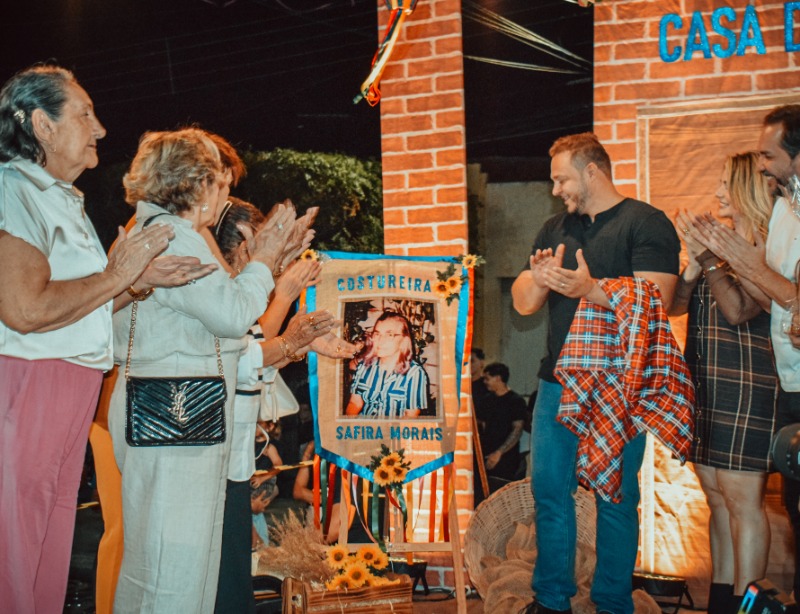 No Palco “Dona Safira”, um momento de homenagens, inicialmente com a presença de suas filhas Maria Luíza, Florinda e Lêda, além dos netos George e Ertha Rianny e outros familiares. O prefeito Chaguinha Lopes e a primeira-dama Vanilda Gambarra entregaram uma lembrancinha feita com significado especial para a família.