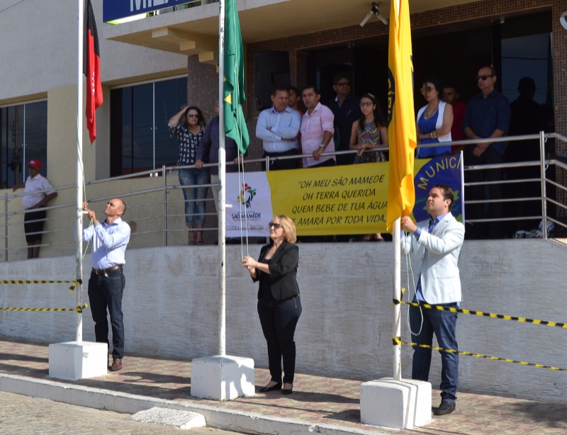 Ao som dos hinos nacional e municipal entoados pela Filarmônica Euclides Rodrigues Brasil, as bandeiras do Brasil, do Estado e do Município foram hasteadas, respectivamente, pela Vice-Prefeita Eva Lucena, o Presidente da Câmara de Vereadores Neoclécio Batista de Andrade e o Prefeito Umberto Jefferson.