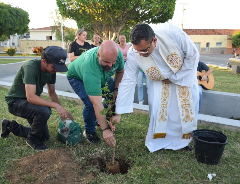 No último sábado, 26, a Prefeitura de São Mamede, por meio da Secretaria do Meio Ambiente, em parceria com o Projeto SerTão Consciente, a Paróquia Nossa Senhora da Conceição e a Ordem Franciscana Secular, fez uma homenagem ao Papa Francisco, na Praça Coronel José Paulo, onde foi plantado um pé de umbuzeiro.