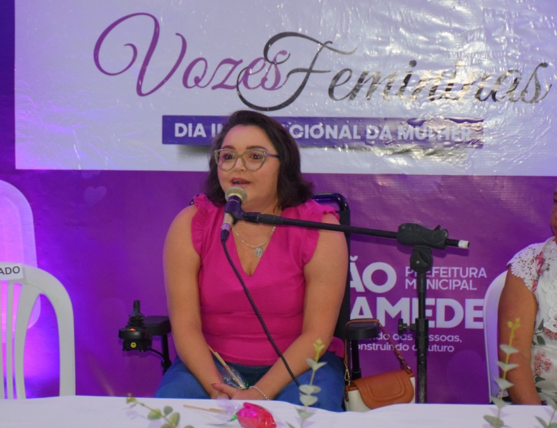 A Prefeitura de São Mamede realizou “Vozes Femininas”, evento alusivo ao Dia Internacional da Mulher, que aconteceu em março, no auditório da Escola Municipal Lúcia de Fátima. Teve a presença maciça do público feminino, além de autoridades políticas, como o prefeito Chaguinha Lopes, acompanhado da primeira-dama Vanilda Gambarra, o presidente da câmara municipal, Kival Júnior, as vereadoras Eva Lucena e Luiza Sátyro, e outros colegas.