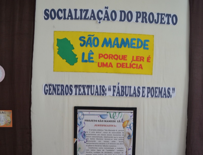 Dando continuidade ao “São Mamede Lê, porque ler é uma delícia”, a Escola Municipal Lúcia de Fátima realizou na quinta (31/08) e sexta-feira (01/09), respectivamente, a socialização do projeto apresentando os resultados dos trabalhos desenvolvidos em sala de aula, com alunos da educação infantil e do ensino fundamental.