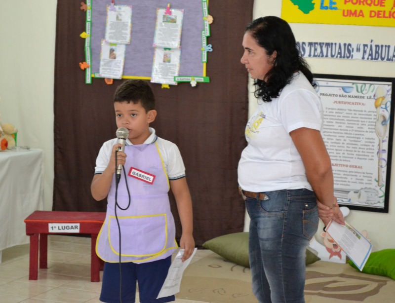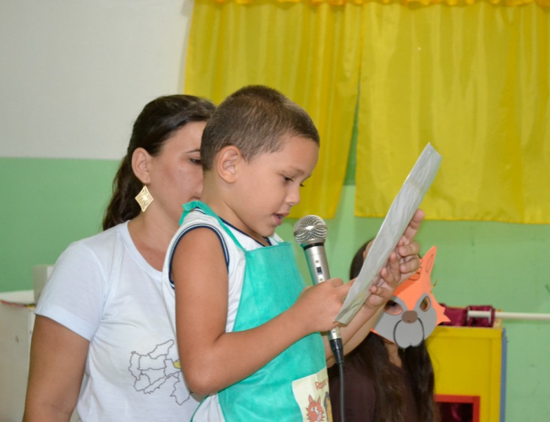 Incentivar a leitura de forma prazerosa esse é o objetivo do programa, argumentou a Professora Josileide – Pré I, dizendo ainda que os poemas e as fábulas possuem textos riquíssimos que ajudam a criança a sentir prazer enquanto leem ou na simples escuta da leitura.