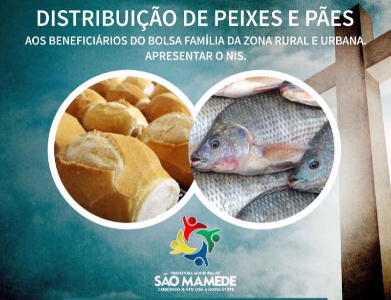 A Prefeitura Municipal de São Mamede através da Secretaria de Assistência Social vai distribuir nesta quarta-feira, 28/3, uma tonelada de peixes incluindo pães a todos os beneficiários do Bolsa Família, tanto os da zona rural quanto da urbana. A entrega será às 16h no Bezerrão.