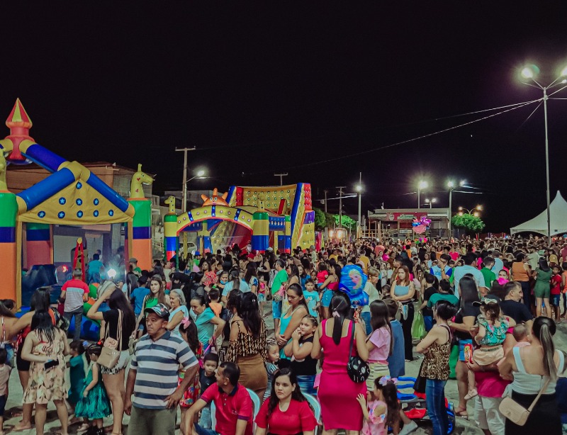A Prefeitura ainda ofertou para a criançada os brinquedos de parque: pula-pulas, escorrego e tobogã, e um espaço de alimentação com cachorro-quente, pipoca, bolo, refrigerante, além da entrega de copos personalizados como lembrança do ‘dia das crianças’.