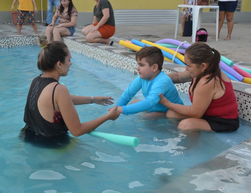 Participaram dessa ação de abertura um total de sete crianças, que estavam acompanhadas de seus pais ou responsáveis. Na piscina, eles contam com o trabalho e as orientações da profissional fisioterapeuta Hamanda Morais.