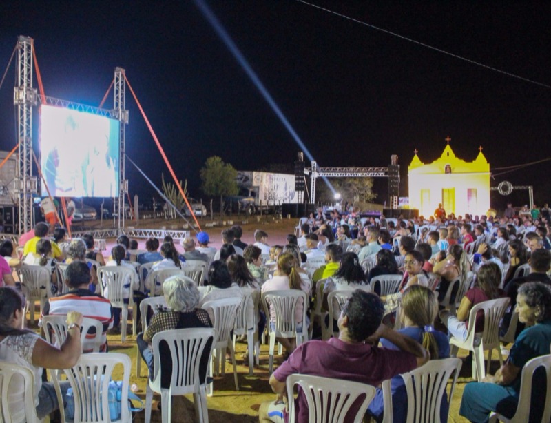 Seguindo a programação, a primeira atração da noite foi o filme “A Botija do Véi Nicolau”, uma criação local idealizada pelo Pastor Robério Lopes, que traz um elenco formado por 100% de pessoas e artistas da terra.