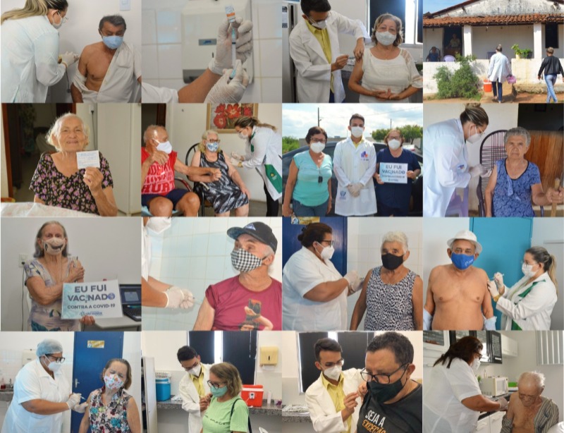 No álbum abaixo, destacam-se uma sequência de fotos da campanha, neste mês, do dia 1º até 23 de março. Incluindo idosos acamados acima de 90 anos, quando receberam a segunda dose.