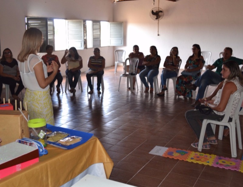 Esse encontro começou com a entrega de certificados para os participantes do ano anterior. Em seguida, a Professora Luzia Betânia, como formadora do encontro atual, trabalhou de maneira sequenciada as didáticas de linguagem e matemática.