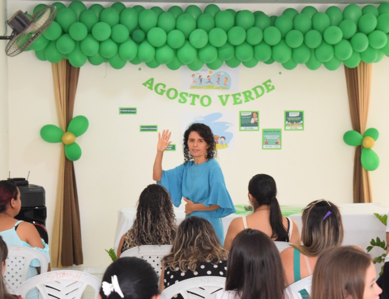 Pela primeira vez divulgando o tema ‘Agosto Verde’, a coordenação do Criança Feliz reuniu o seu público-alvo para uma palestra no CRAS. Ediva Andrade, professora pedagoga, falou da importância da família no brincar.